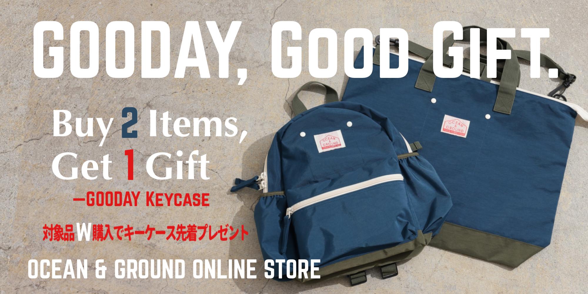 「ショルダーツキレッスンBAG GOODAY」と「DAYPACK GOODAY 【Online Exclusive】」を同時に購入いただいた先着10名様に「キーケースGOOODAY」をプレゼント